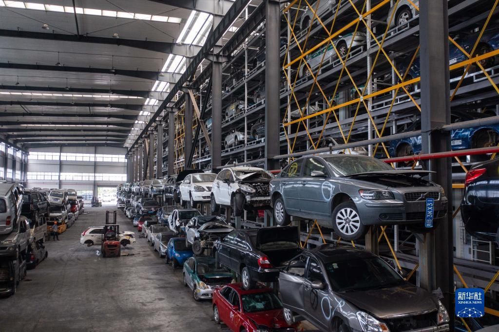 8月30日,在湖州市吴兴区东林镇一家机动车回收拆解企业的智能化立体存储库内,等待拆解的机动车有序停放在存储架上。 近年来,浙江省湖州市大力发展绿色低碳循环经济,积极推动机动车回收拆解行业技术升级,提高拆解效率和效益,提升资源精细化分类再利用,推动机动车拆解行业绿色可持续发展。 新华社记者 徐昱 摄