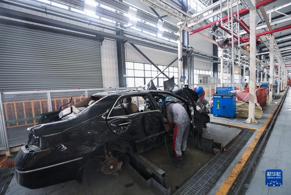 摘要:8月30日,在湖州市吴兴区东林镇一家机动车回收拆解企业的车间内,工作人员在流水线上拆解机动车的底盘。 近年来,浙江省湖州市大力发展绿色低碳循环经济,积极推动机动车回收拆