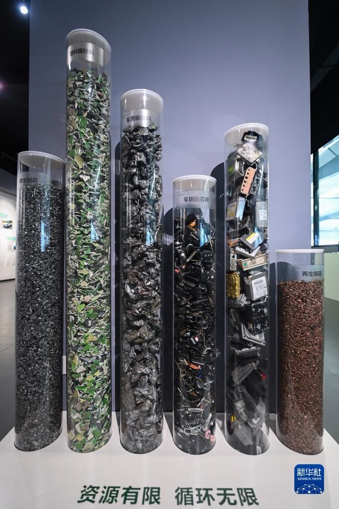 8月30日在湖州市吴兴区东林镇一家机动车回收拆解企业的展厅内拍摄的机动车拆解后可以分类再利用的资源。 近年来,浙江省湖州市大力发展绿色低碳循环经济,积极推动机动车回收拆解行业技术升级,提高拆解效率和效益,提升资源精细化分类再利用,推动机动车拆解行业绿色可持续发展。 新华社记者 徐昱 摄